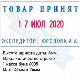 | Размер поля: 41 х 24 мм. Высота шрифта даты: 4 мм. |