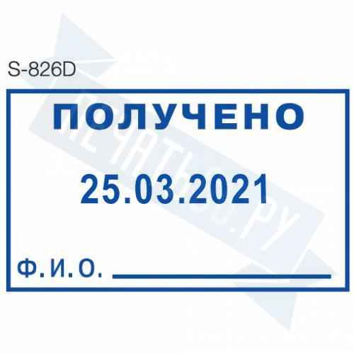 Размер поля: 41 х 24 мм. Месяц: цифрами. Разделители: точки.Штемпельная подушка: синяя.
