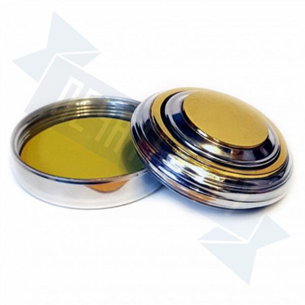 Полуавтоматическая металлическая оснастка Сатурнт D42 с подушкой. Одно отделение, кнопка для промакивания клише печати в штемпельную подушку. Диаметр 42мм.